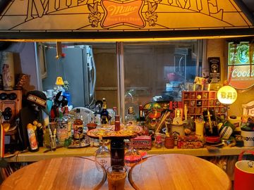 After refinishing and designing the Wine Barrel Head with bottle corks they are finished with Butcher Block Oil or Stain. $200 Place mates $30 each